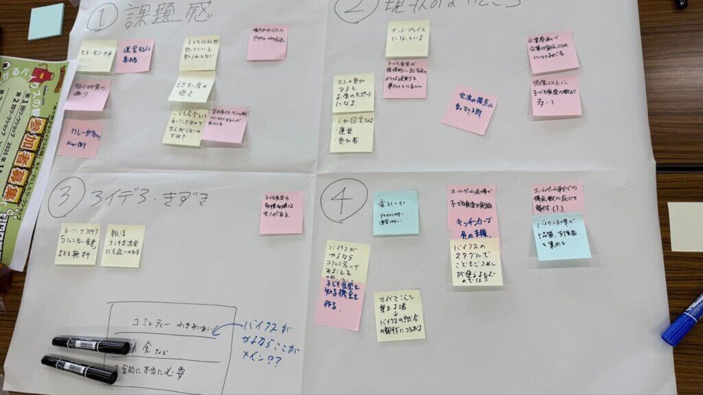 ワークショップ後半では、「愛媛で子どもたちの食を支えるために、何ができるだろう?」というテーマで意見を出し合いました。